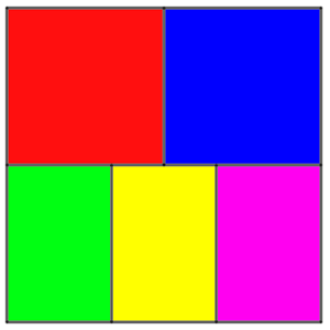 La figura siguiente es un cuadrado formado por dos azulejos cuadrados y tres rectangulares, unidos por el lado más largo.