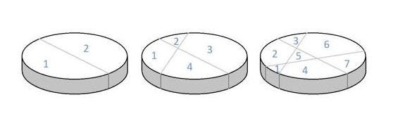 «Si realizamos un corte recto a la tarta, obtenemos dos trozos. Con un segundo corte recto que cruce el anterior, conseguimos cuatro trozos y con un tercer corte recto podemos llegar a siete trozos de tarta».